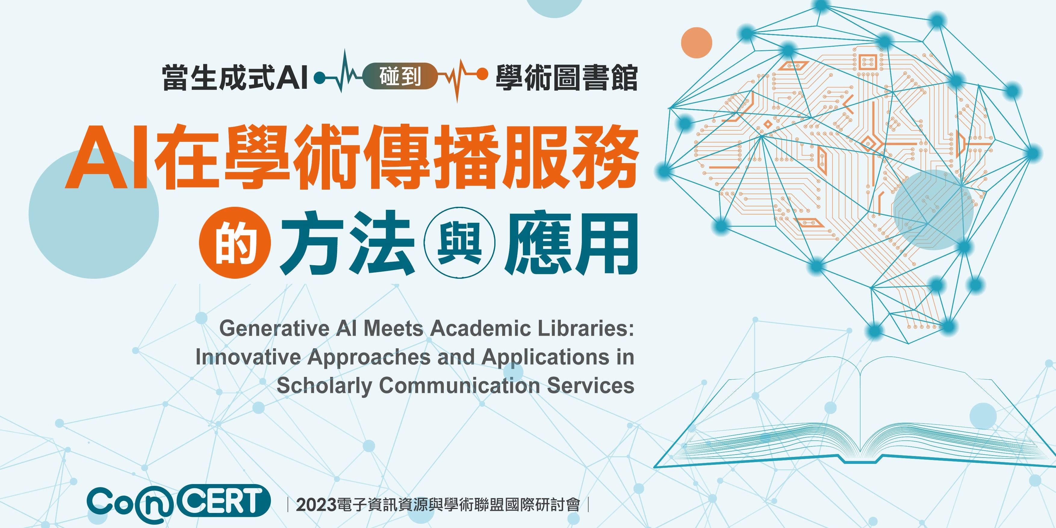 當生成式AI碰到學術圖書館:AI在學術傳播服務的方法與應用 Generative AI Meets Academic Libraries: Innovative Approaches and Applications in Scholarly Communication Services 全國學術電子資訊資源共享聯盟成立至今已邁入第25週年,2023年CONCERT國際學術研討會時間定於 11月15日(三)至16日(四)兩天假國立政治大學公企中心A2國際會議廳舉辦。本次會議主題為「當生成式AI碰到學術圖書館:AI在學術傳播服務的方法與應用」,邀請國際知名與國內圖書資訊界專家學者及出版商就此一重要議題分享新知卓見,相關訊息請見 研討會網站。more